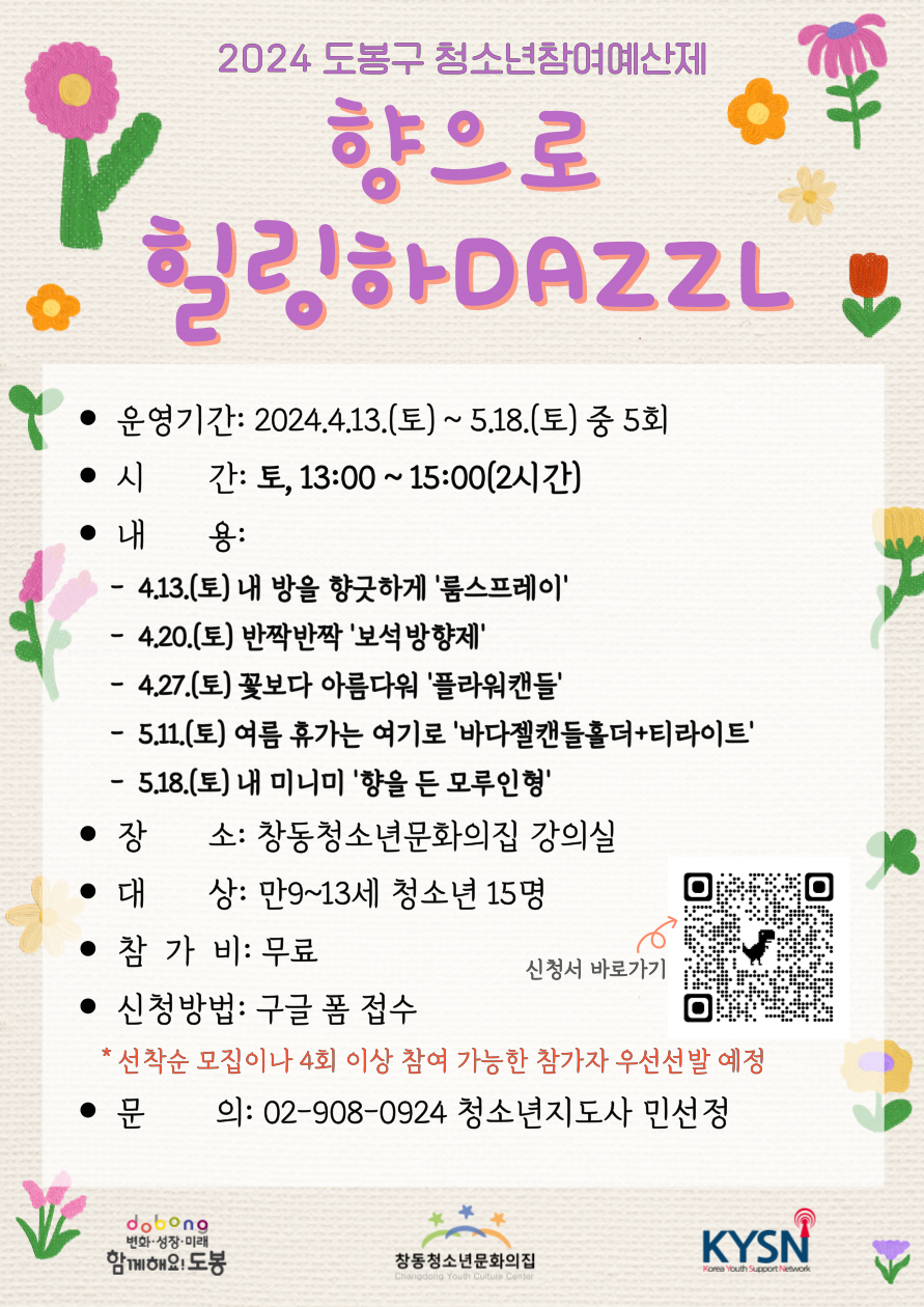 ÇâÀ¸·Î Èú¸µÇÏDAZZLÀº 2024³âµµ µµºÀ±¸ û¼Ò³âÂü¿©¿¹»êÁ¦ÀÇ ÀÏȯÀ¸·Î û¼Ò³âÀÇ °üÁ¡¿¡¼ Âü¿©È°µ¿ Ȱ¼ºÈ¸¦ À§ÇØ ¿î¿µÇÏ´Â ¿À°¨ÀÚ±Ø Çâ±âÅ×¶óÇÇ Ã¼ÇèȰµ¿ÀÔ´Ï´Ù.