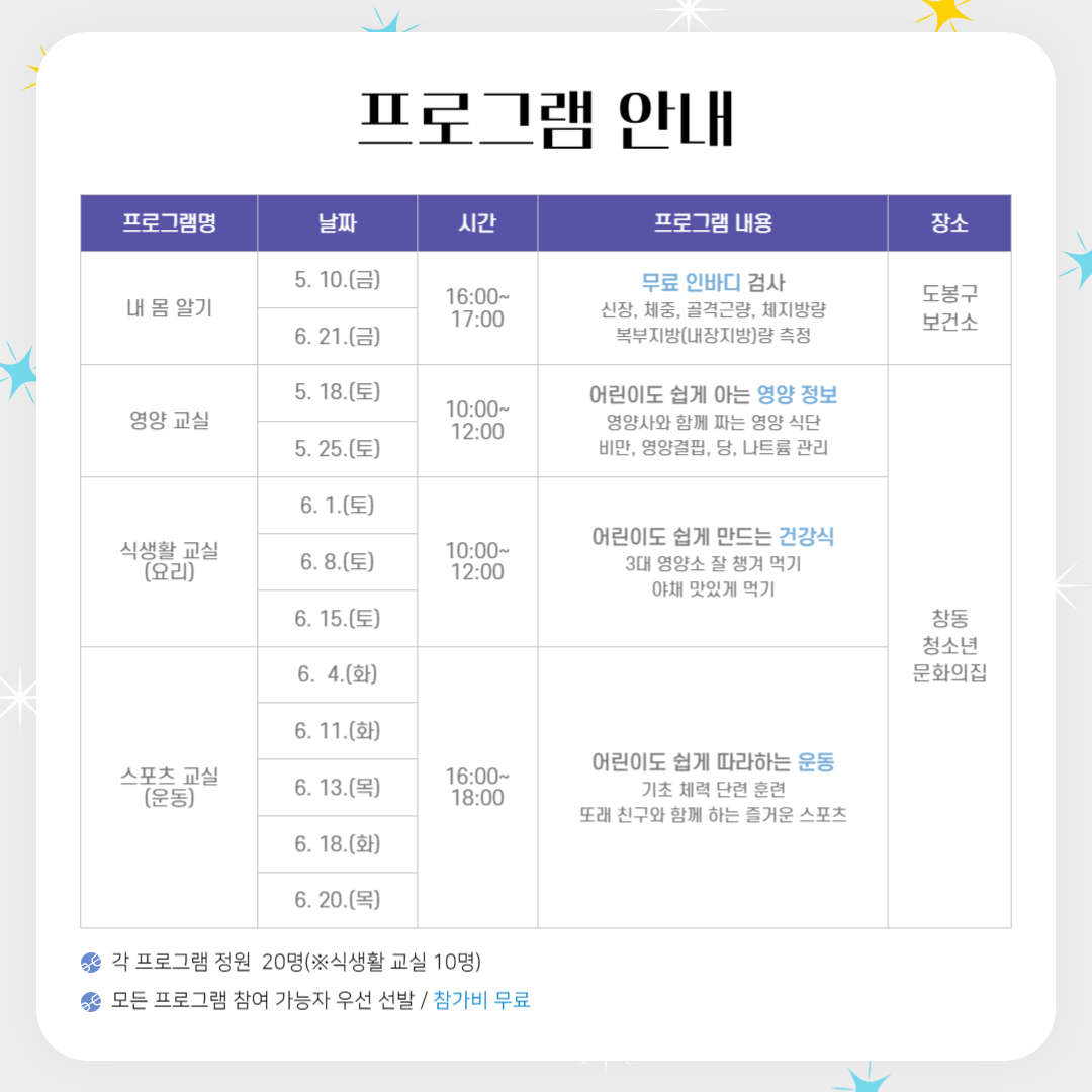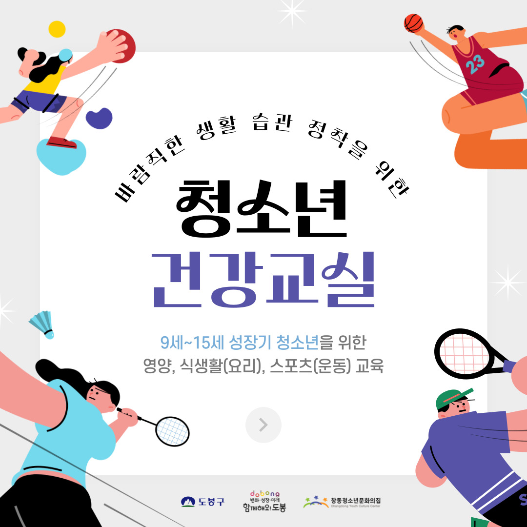 ¹Ù¶÷Á÷ÇÑ »ýȰ ½À°ü Á¤ÂøÀ» À§ÇÑ Ã»¼Ò³â °Ç°±³½Ç ÇÁ·Î±×·¥¿¡ Âü¿©ÇÒ Ã»¼Ò³âÀ» ¸ðÁýÇÕ´Ï´Ù.