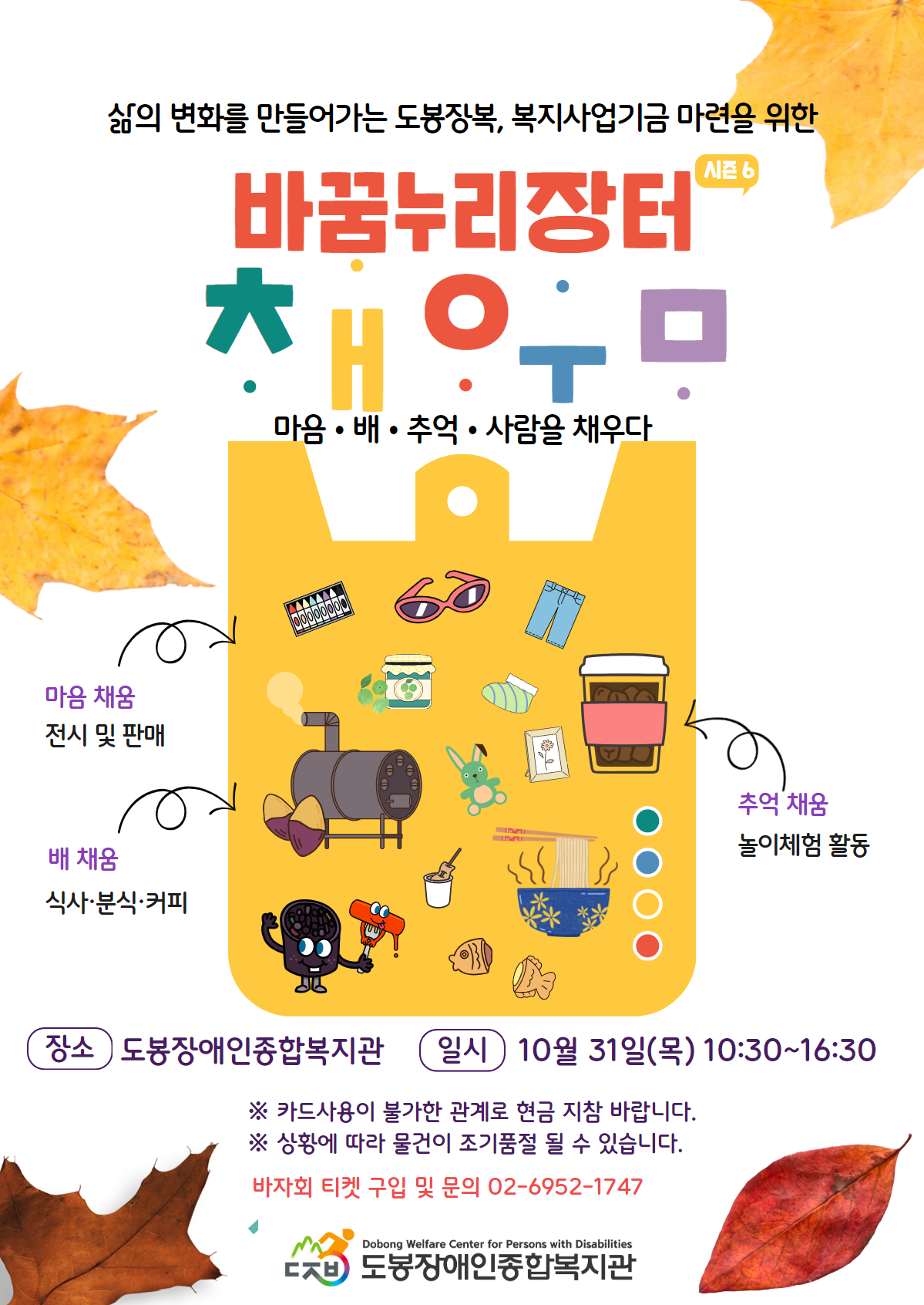 µµºÀÀå¾ÖÀÎÁ¾ÇÕº¹Áö°ü¿¡¼ <2024³â ¹Ù²Þ´©¸®ÀåÅÍ6 ä¿ò>À» °³ÃÖÇÕ´Ï´Ù.