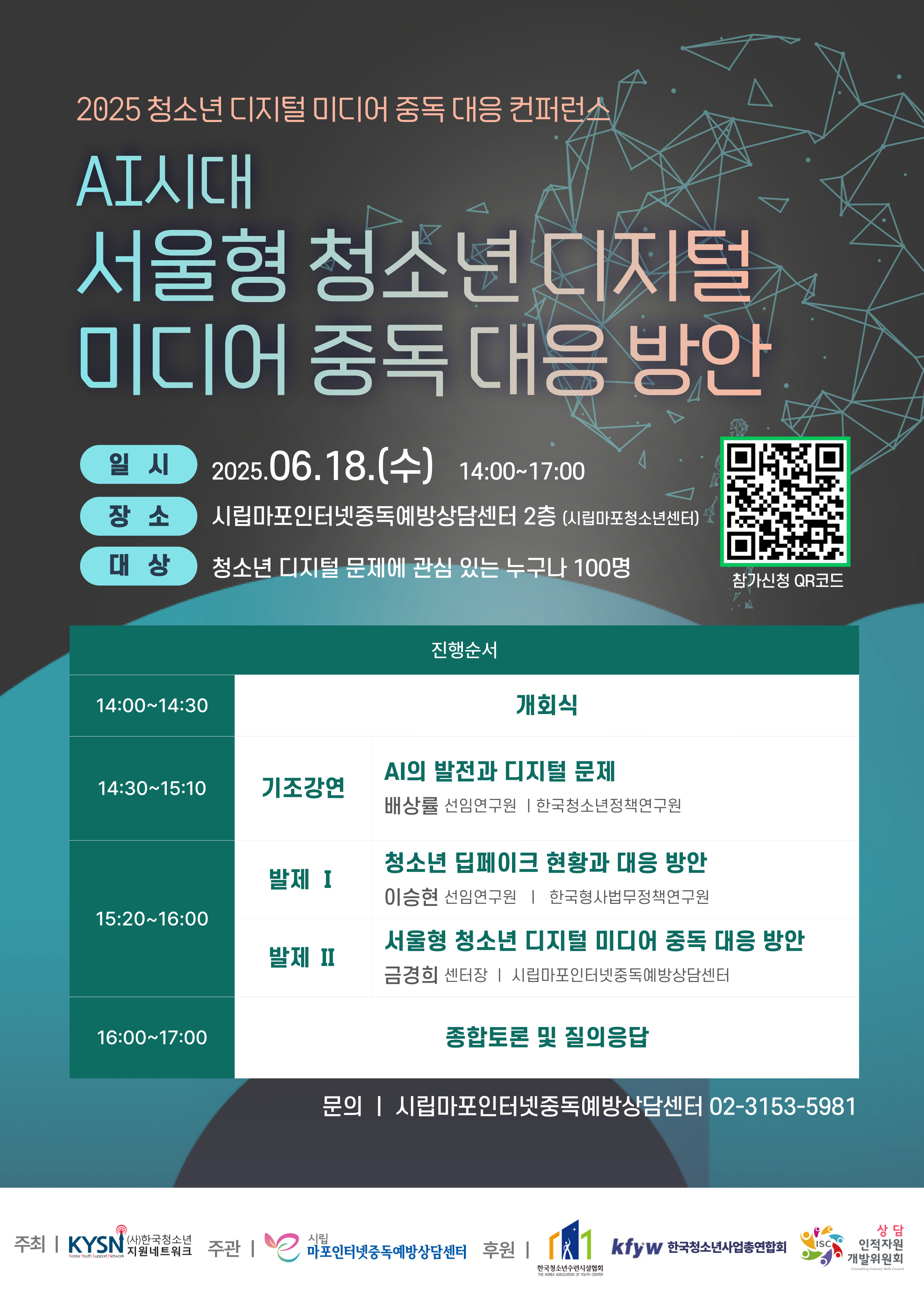 [û¼Ò³â µðÁöÅÐ ¹Ìµð¾î Áßµ¶ ´ëÀÀ ÄÁÆÛ·±½º °³ÃÖ]´ÙÁñ ¿î¿µ ¹ýÀÎÀÎ (»ç)Çѱ¹Ã»¼Ò³âÁö¿ø³×Æ®¿öÅ©¿¡¼ ºü¸£°Ô º¯ÈÇÏ´Â µðÁöÅÐ ½Ã´ë¿¡ ¹ß¸ÂÃç ³ª°¡°íÀÚ 'AI½Ã´ë ¼¿ïÇü û¼Ò³â µðÁöÅÐ ¹Ìµð¾î Áßµ¶ ´ëÀÀ ¹æ¾È'À» ÁÖÁ¦·Î 2025.6.18.(¼ö) ÄÁÆÛ·±½º¸¦ °³ÃÖÇÕ´Ï´Ù! ¼±Âø¼ø ¸¶°¨À¸·Î, ¸¹Àº °ü½É ºÎʵ右´Ï´Ù ✅½Åû¸µÅ© ¹Ù·Î°¡±â