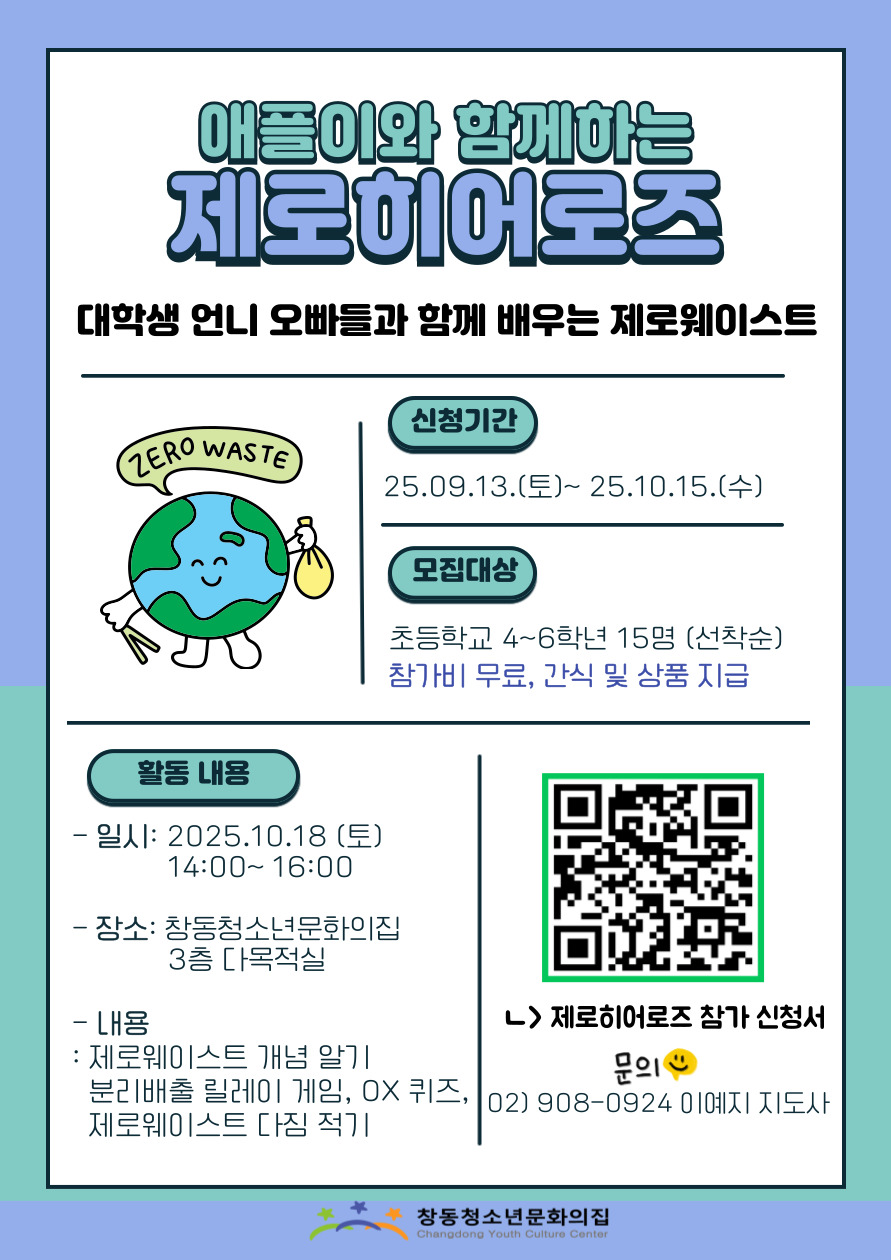 🍎û¼Ò³âÀÚ¿øºÀ»ç´Ü ¾ÖÇÃÀÌ¿Í ÇÔ²²ÇÏ´Â ¡®Á¦·ÎÈ÷¾î·ÎÁ Âü°¡ÀÚ¸¦ ¸ðÁýÇÕ´Ï´Ù! ´ëÇлý ¾ð´Ï ¿Àºü, Çü ´©³ªµé°ú ÇÔ²² ¹è¿ì´Â Á¦·Î¿þÀ̽ºÆ®🍏❤️ ÀϽÃ: 25.10.18.(Åä) 14:00-16:00💚 Àå¼Ò: ⵿û¼Ò³â¹®ÈÀÇÁý 3Ãþ ´Ù¸ñÀû½Ç❤️ ¸ðÁý´ë»ó: ÃʵîÇб³ 4-6Çгâ 15¸í(¼±Âø¼ø)💚³»¿ë: Á¦·Î¿þÀ̽ºÆ® °³³ä ¾Ë±â, ºÐ¸®¹èÃâ ¸±·¹ÀÌ °ÔÀÓ, OX ÄûÁî, Á¦·Î¿þÀ̽ºÆ® ´ÙÁü Àû±â❤️ ½Åû±â°£: 25.09.13(Åä) ~10.15(¼ö)💚 ½Åû¹æ¹ý: QRÄÚµå ½ºÄµ ÈÄ ³×À̹ö Æû ÀÛ¼º / https://naver.me/5GGwC91B❤️Âü°¡ºñ ¹«·á, °£½Ä ¹× »óǰ Áö±Þ
